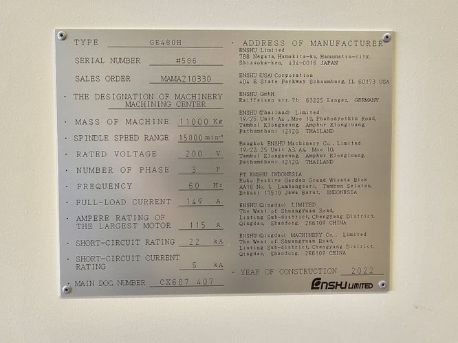 Enshu #GE480H, horizontal machining center, 15000 RPM, 60 automatic tool changer, brand new, never used